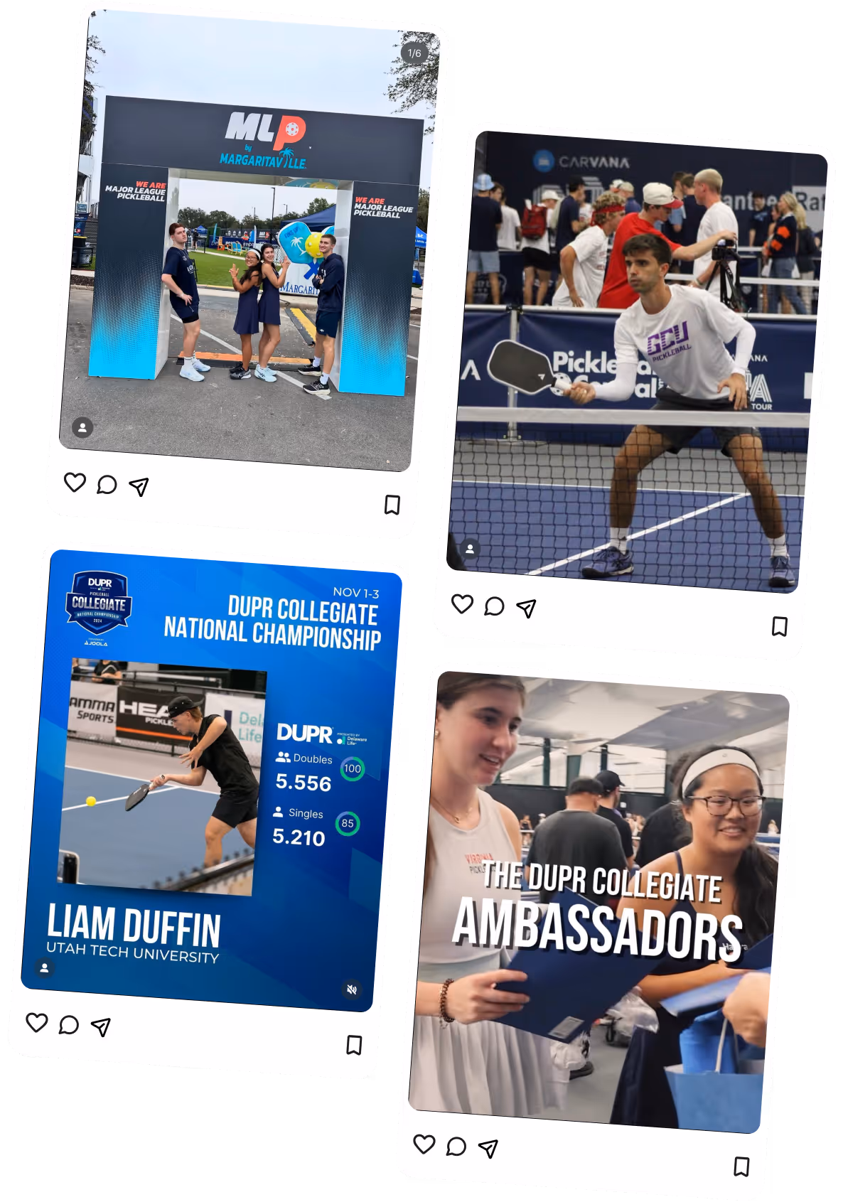 Collaborate with DUPR and Collegiate Pickleball Tour (CPT) on social media content and campaigns.