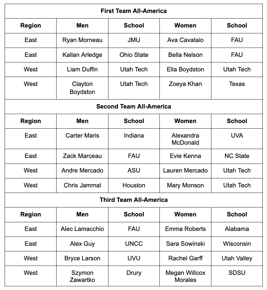 1st Team All-America: These players represent the absolute pinnacle of college pickleball and will face off in the highly anticipated East-West Game.