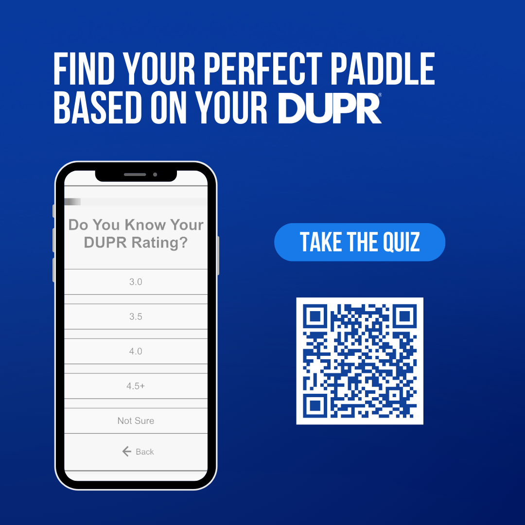 You can take this recommended quiz to receive paddle suggestions tailored to your DUPR pickleball rating.