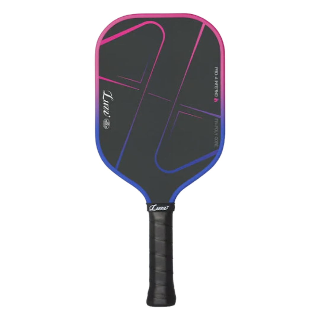 The aggressive Luzz Pro 4 Inferno features a 100% foam core, delivering intense power for drives and finish shots. Due to its power focus, lower-level players may find resets and dinks challenging, but it is highly recommended for skilled players who can handle its speed.