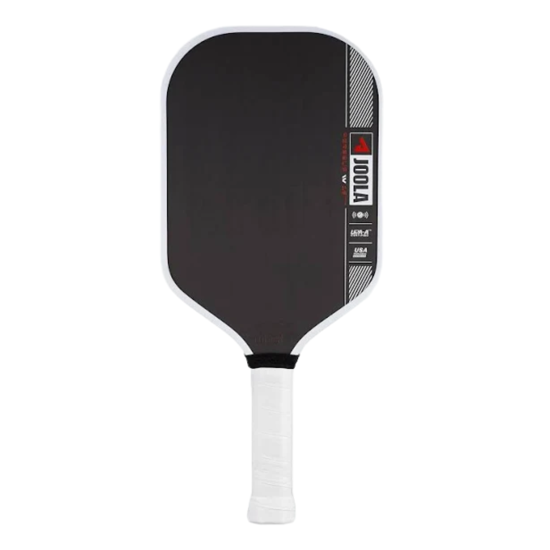 JOOLA's Pro V models feature the new "KineticFrame," designed to flex upon impact and quickly recover. Inspired by hockey and golf engineering, this proprietary architecture minimizes off-center movement. JOOLA states it delivers precise power, predictable ball launch, less angle deviation, and faster recovery for quick exchanges.